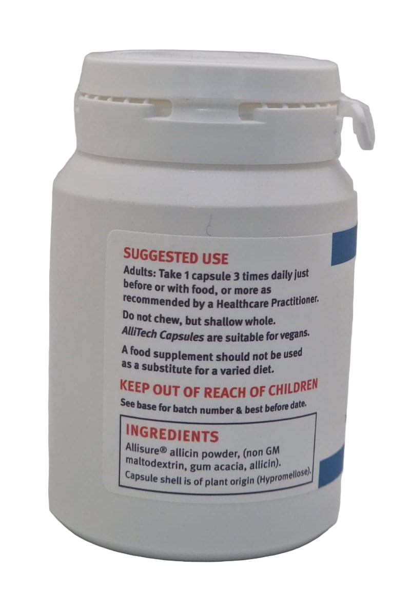 Offered in capsule form, AlliTech is easy to use on the go while maintaining the full potency of pure Allicin. Unlike other garlic supplements, which may use powder or oil with diluted benefits, AlliTech ensures 100% effectiveness.